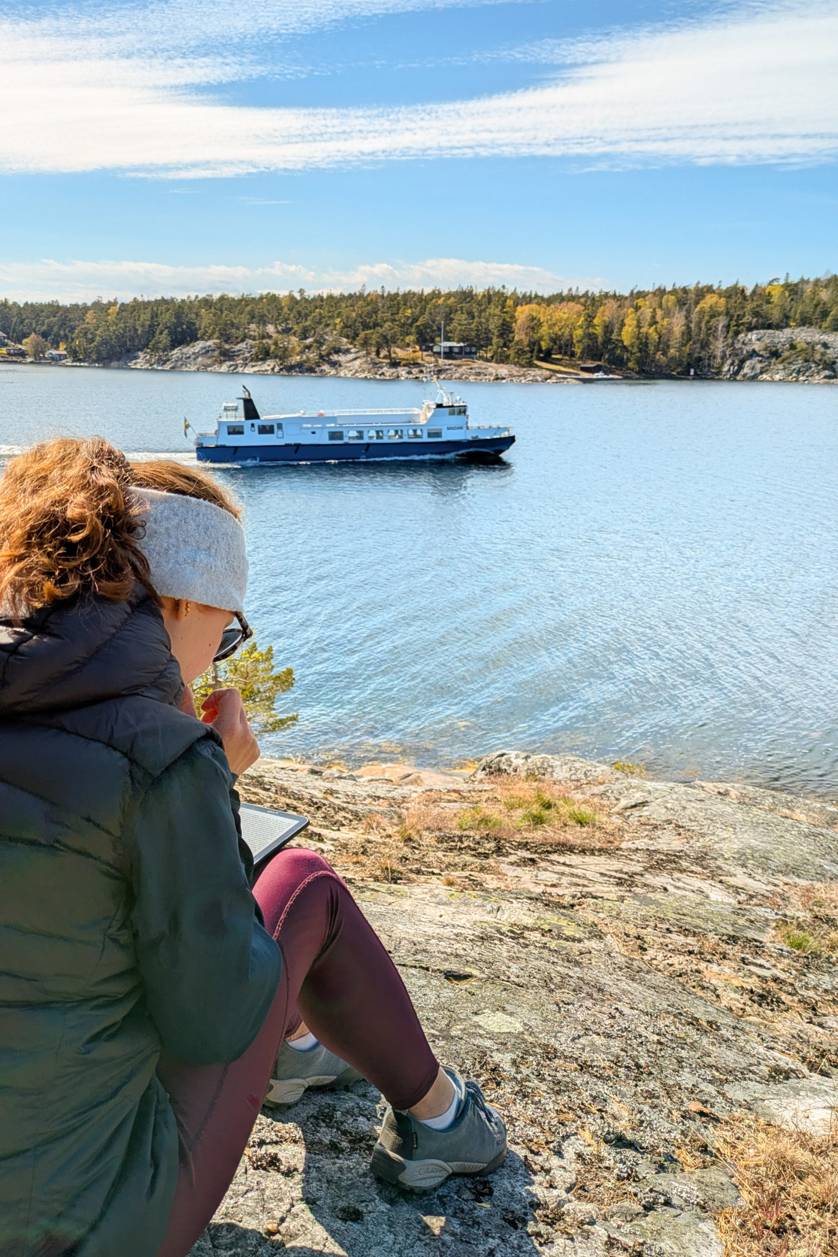 De ganz nächsti Tag hemmer mitme 18km lange Spaziergang und üsne Büecher uf de grosse Insle Runmarö verbracht. Det gits sogar e Lade und es Restaurant (wo aber nur am Wuchenänd offe hed 😥)! D’Fährefahrte, d’Insle mit ihrne schöne rote oder anderstfarbige Hüsli und die schöne Ussichte ufs Wasser hend üs sehr gfalle 🙂