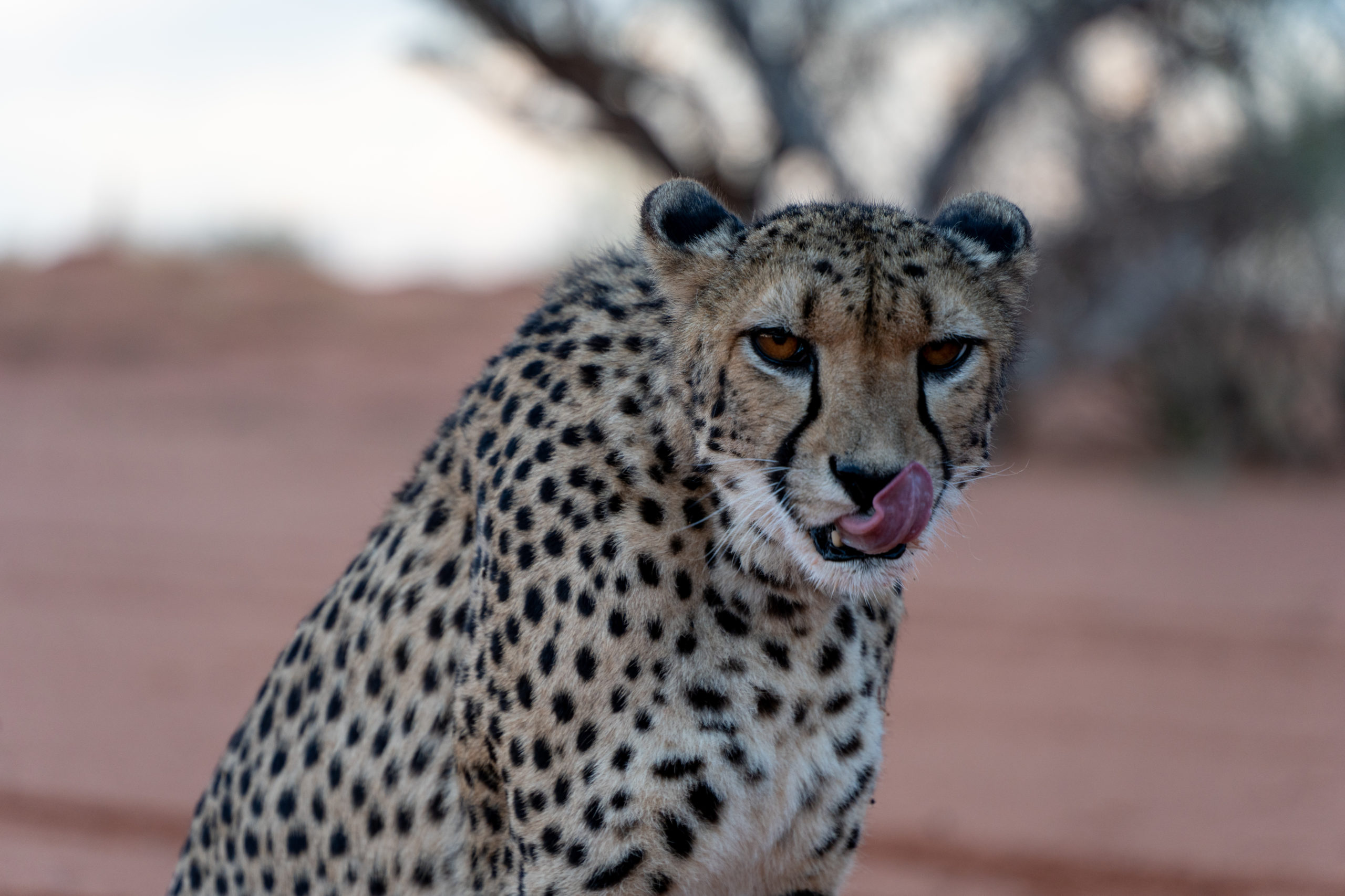 Uf de Bagatelle Kalahari Ranch, womer bis gester no gsi sind, hends vier Geparde. Gepard überläbed ide Natur nume, wenns zwei Jahr lang mitm Mami chönd mitlaufe und lerne. Die Geparde wo sie uf de Ranch hend, hend s Mami verlore und sind vo ihne ufgnoh worde. D Ranch isch inzwüsche ide Region bekannt defür, dass sie sich mit Geparde uskännt und drum hends z.B. au scho en Gepard vomene Buur übernoh, wo de jung Gepard als „Huuschatz“ ghalte hed (de Gepard fahrt drum z.B. gern Auto und isch gern um Mänsche ume) und irgendwenn nüme mitm klar cho isch. D’Geparde uf de Ranch sind mitme Haag vo de andere Tier trännt. Bem Bestuune vo de Geparde hemmer au no härzigi Erdmändli gseh.