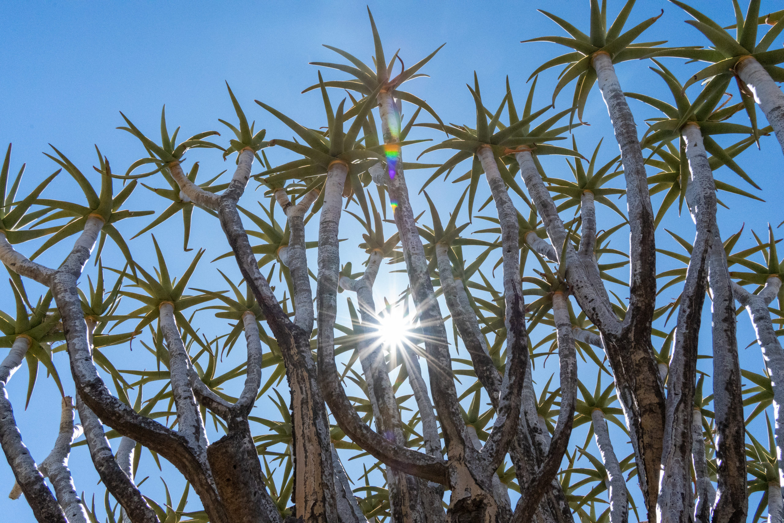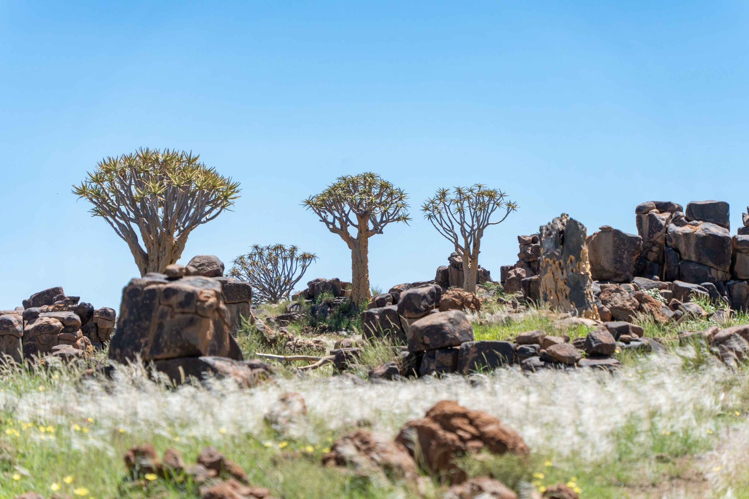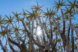 Ufm Wäg zu üsem nächste Campingplatz hemmer no de Köcherbaumwald besichtiged mit ganz spezielle Bäum wo ibettet sind inere Steilandschaft.