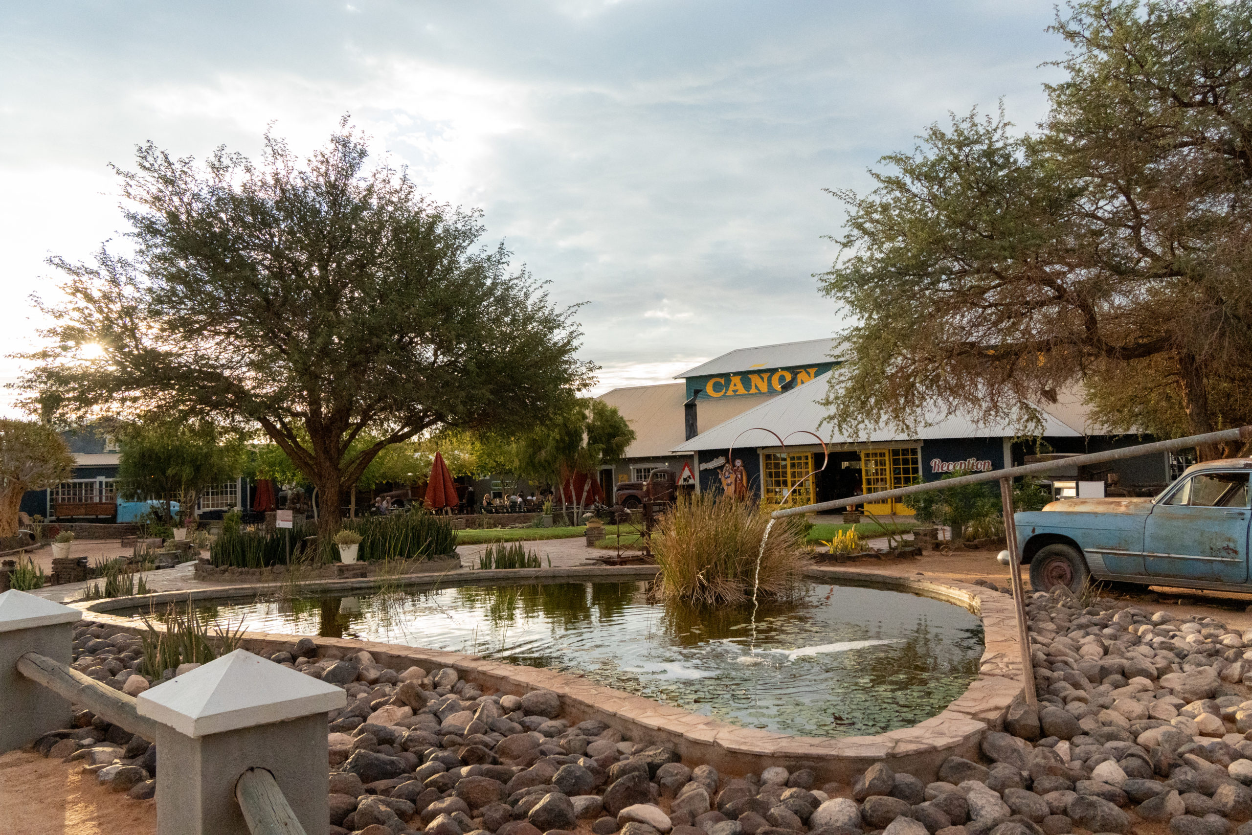 Gester simmer de ganz Wäg vo de alte Kalköfen bis zu üsem Campingplatz, ide Nöchi vom Fish River Canyon, uf Chiesstrasse gfare (ca. 2h). Ufm Wäg hed de Domi sponti bimene wunderbare Kaffi aghalte. Also eigentli ischs en Distilerie, aber sie hend au es Kaffi mit em beeeeste Rüebli-Dattel-irgendöppis-Cake! En Dattelgin hemmer de natürli au grad kauft, nachdem mer d Ussicht uf d Dattelbäum gnosse hend.