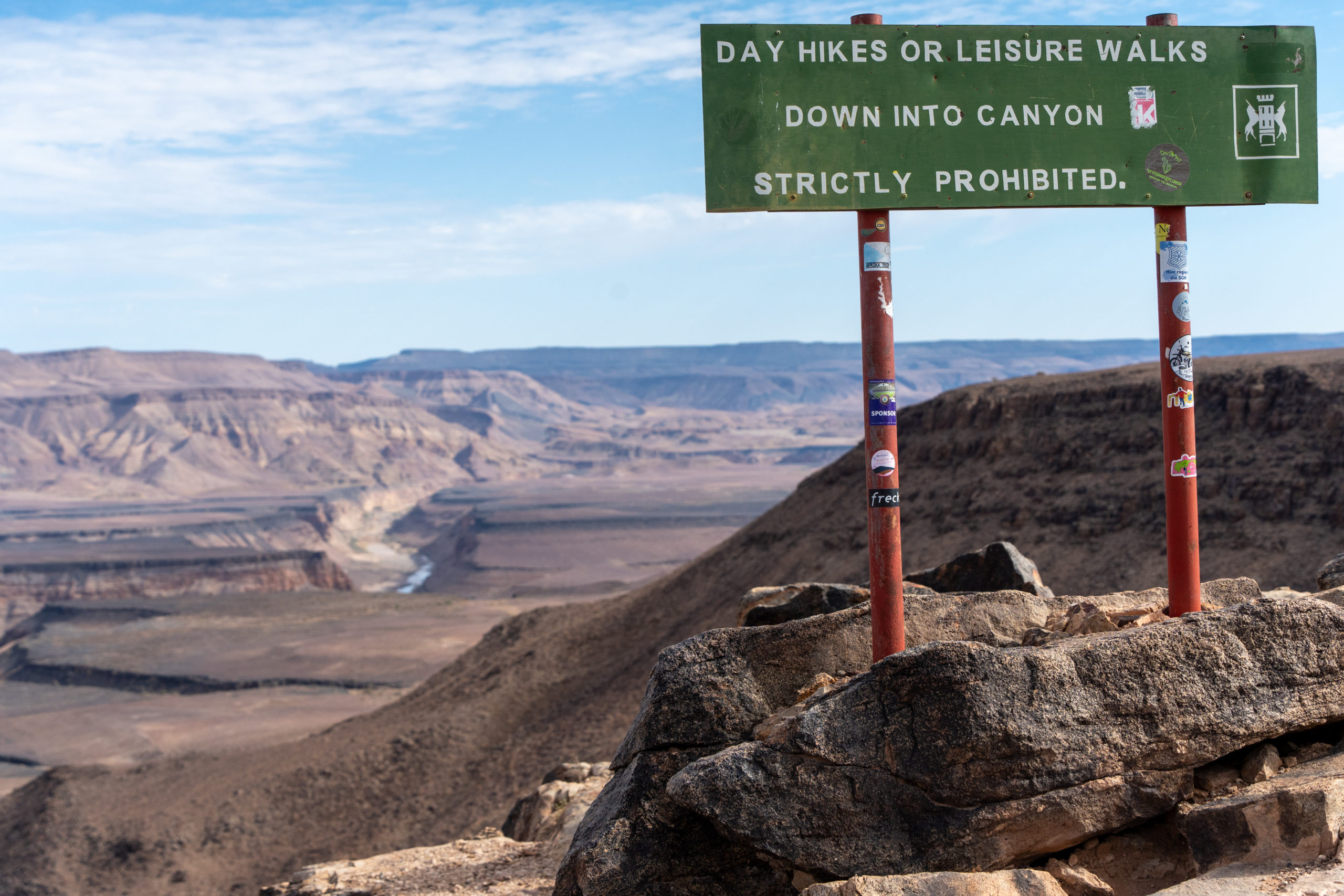 Gester im spötere Namitag, wo ändlich Wolke ufzoge sind, hemmer no e chlini aber schöni Wanderig gmacht. Sie hed grad hinder üsem Campingplatz gstarted. Hüt am morge simmer am 6i zum Fish River Canyon gfahre. Das isch de grössti Canyon nach em Grand Canyon ide USA. Mer chan erst ab Mitti April gfüerti, mehrtägigi Wanderige in Canyon abe mache. Drum hemmer de Canyon ide chüele Morgestunde vo obe bestuunt. D Grössi isch würkli idrücklich! Da mer ned am klassische Ussichtspunkt blibe sind, sondern es Halbstündli hindere gloffe sind, simmer ganz allei gsi. Obwohls au sust nume wenig Lüüt hed abgseh vo de Reisegrppe Germans und de Reisegrppe Chamäleon (Vorteil devo, dass mer ned ide Hauptsaison da sind juhuuu 🙂 ).