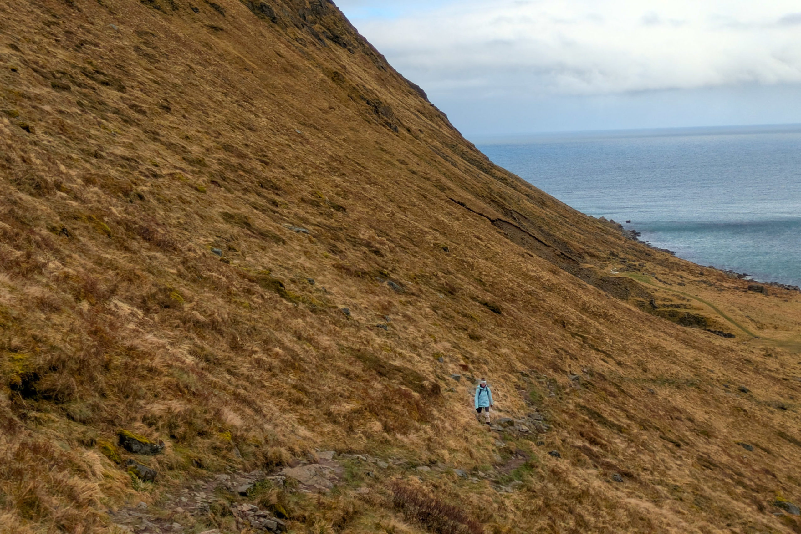D’Wättervorhersag füre 18.05. isch wunderbar gsi. Drum hemmer nach Zmorge be strahlend blauem Himmel en Rundwanderig ufe Lødingsaksla (uf 569 MüM) gstarted. Ufm erste Gipfel uf 469 MüM ischs Wätter no schön gsi und am Schnee hemmer no guet chönne us em Wäg gah. Womer de Lødingsaksla sind afo ufechraxle ischs Wätter immer schlächter worde. Churz bevor mer dobe gsi sind, hemmer entschiede, dass mer zrugg gönd. D’Wolche sind immer dichter worde und mer hend ned gwüsst, wie viel Schnee uf em andere Wäg liid. Drum simmer alles wieder abekraxled und sind de glich Wäg zrugg. Zwüschedure hemmer nüme witer als 10m gseh. De Mr. Orientierig hed üs natürli wieder ufe Wäg bracht und plötzli hemmer s’Städtli under üs gseh. S‘ Städtli isch no voll ide Sunne gsi und s’Meer hed so türkis glüchted, es hetti chönne uf de Maledive si. Aber üs heds währenddesse im Berg obe fast weggwindet und mer sind voll ide Wolche inne gsi 🤷♀️ Dunne acho hemmer üs die öppe 54igst Zimtschnägg gönnt.