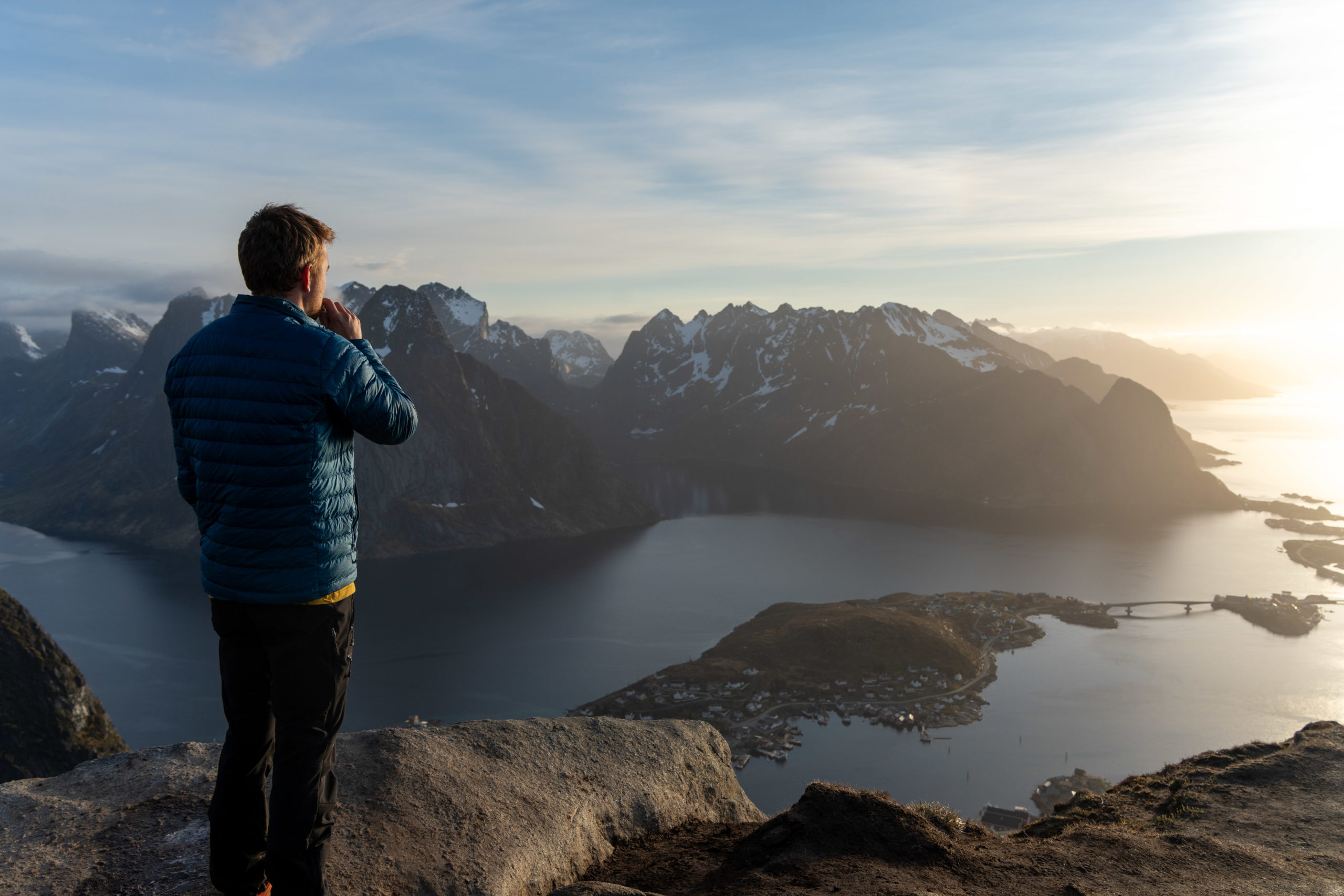 Am 16.05. simmer mitm Auto ca. 40min uf Fredvang gfahre. Det hemmer zwei verschideni Wanderige gmacht. Mängisch heds grägneled, mängisch isch aber au biiitzli blaue Himmel füre cho 🙂 Am Abig simmer früeh go schlafe, well de Wecker uf die 3:30 gstellt worde isch. Gmäss Wätterbricht (de isch zwar immer mit Vorsicht z’gnüsse) ischs am nächste Tag nur zwüsche 3:00 und 6:00 sunnig. Die Ziit hemmer welle nutze, zum de Reinebringen bestiege. En Wanderig chamers ned nänne, de Wäg bestad nämli eifach us 1978 Stägetritt (ca. 440 hm und 1.1 km). Am 04:50 simmer dobe acho und d’Ussicht isch grandios gsi. Es isch denn zwar de ganz Tag sunnig gsi, aber immerhin heds am Morge früeh no fast kei Lüüt gha 😉