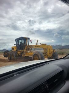 Erstunlich isch aber, dass d’Strasse jewils nach churzer Ziit wieder usbessered wirded. Bi de Gravel Roads isch konstant en einsame Arbeiter neu am planiere. Mit dene grosse Maschine fahred sie tagelang hunderti Kilometer dur d’Landschaft, ganz uf sich allei gstellt.
