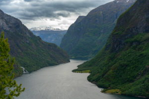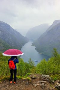 Am Namitag simmer mit em Büssli de grad witer zum Nærøyfjord gfahre und hend det ufmene Plätzli anere Waldstrass übernachted (bi Jordalen). D’Schaf hend näbe üs grased und sind üses Auto go beschnuppere. Am Morge vom 27.05. hemmer die churz rägefrei Phase gnutzt und sind ufe Rimstigen gloffe. Vo det hemmer en wunderbari Ussicht uf de Nærøygord gha. Leider heds no während em Ufstieg afo rägne. De Domi hed de Schirm ufgmacht und isch vo dene wenige Lüüt womer gseh hend chli schräg agluegt worde. Aber die sind demfall nonie mitme schwizer Bergfüerer:in go wandere 🤷♀️