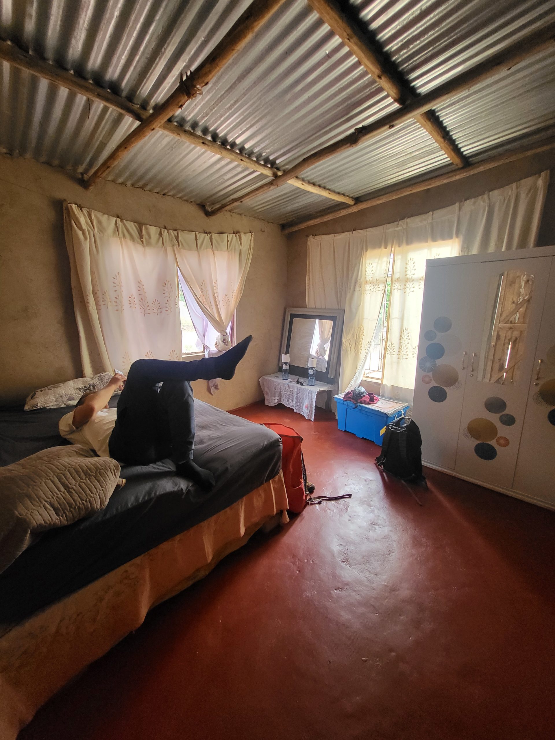 S‘ Dorf und s’Nachberdorf hend zäme schins 7’000 Iwohner, mer chönd üs das aber fast ned vorstelle… (es hed nach weniger usgseh). Mer sind im Dorf vo vier Iwohnerinne, wo guet änglisch chönd, begrüest worde. Mer hend de ganz Tag mit ihne verbracht und diversi „Aktivitäte“ undernoh. Zerst hemmer bimene Spaziergang s’Dorf erchundet und die vier Iwohnerinne mit Frage über ihres Läbe det glöchered. Spöter hemmer mit ihne gchrälleled, tanzed, ihres sälbergmachte Bier probiert und de Bode vor eme Huus mit Gülle igschmiert, zums Huus vor Schlange und Co. schütze (mer hend aber erfahre, dass das hützutags fast niemermeh macht). Spöter simmer je z’zweite binere Gastfamilie iquartiert worde. D‘ Gastmüettere (alli alleierziehend) hend kei änglisch chönne und drum hemmer immer en Übersetzerin brucht. Üsi Gastmueter hed 5 Chind, vermuetli sind ned alli vom gliche Mah. Die wenigste sind verhürated und die meiste hend scho sehr früeh Chind. Einersits, wells vermuetli kei Zuegang zu Verhüetigsmittel hend und anderersits, well sie pro Chind pro Monet 500 Rand (Fr. 25) vom Staat überchömed. Sie nänned das es zuesätzlichs Ikomme, obwohl es Chind wahrschindlich ja nomeh Choste verursacht.