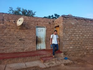 S‘ Hüsli vo üsere Gastfamilie hed zwei Türe. Eini füert ih das Zimmer wo mier hend döffe schlafe und die ander füert vermuetli inen Ruum, wo die ganz Familie schlaft. Mer sind nie dinne gsi, aber de Ruum isch ned viel grösser gsi als üses Zimmer… Mer sind aber sehr positiv überrascht gsi vo üsem Zimmer. Im und ums Huus heds kei laufends Wasser, aber es Plumsklo. Znacht und Zmorge hemmer ned mit üsne Gastfamilie gässe, sondern mit üsere Gruppe und de vier änglischsprachige Iwohnerinne. Im Gross und Ganze ischs en authentische Iblick is Dorfläbe gsi.