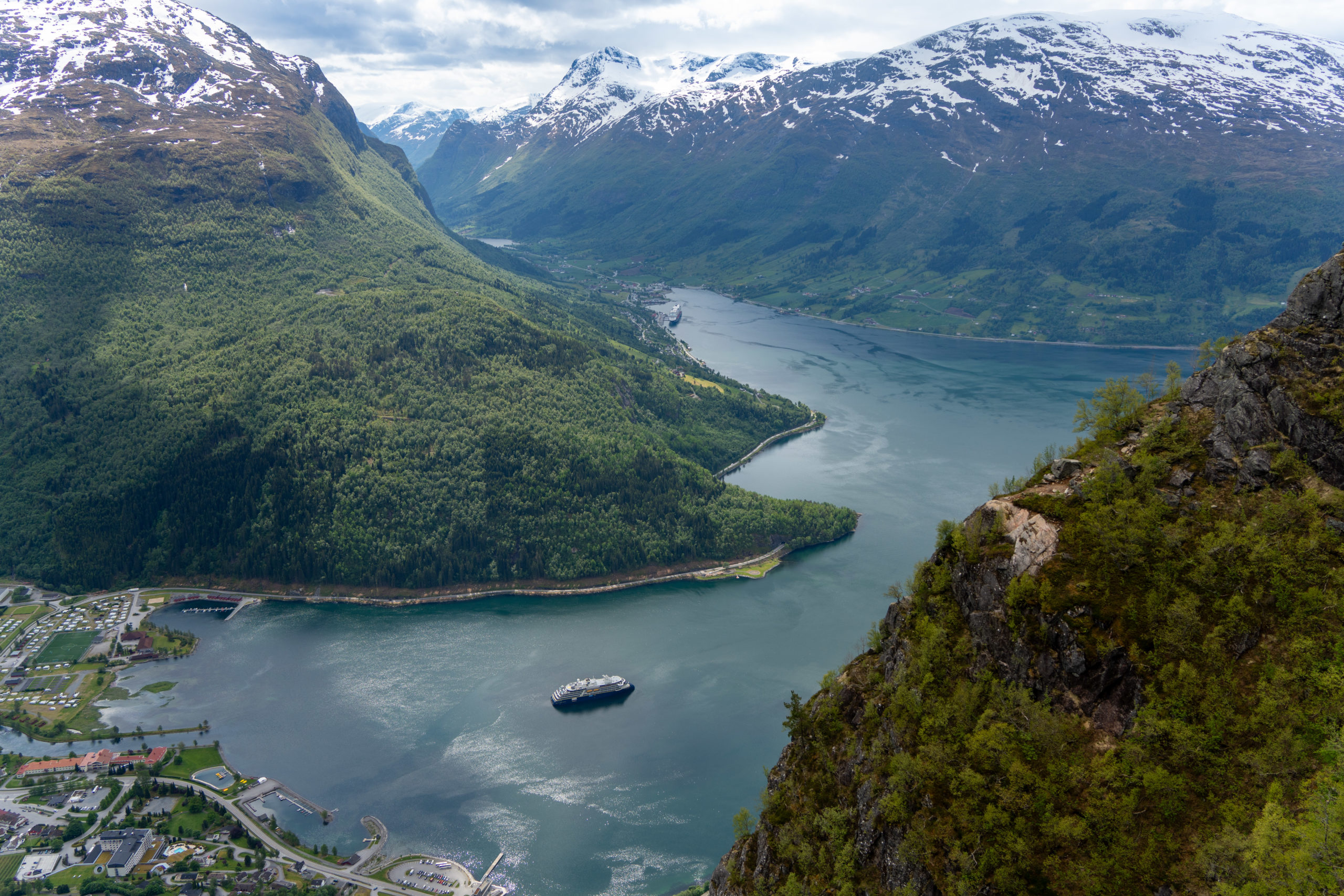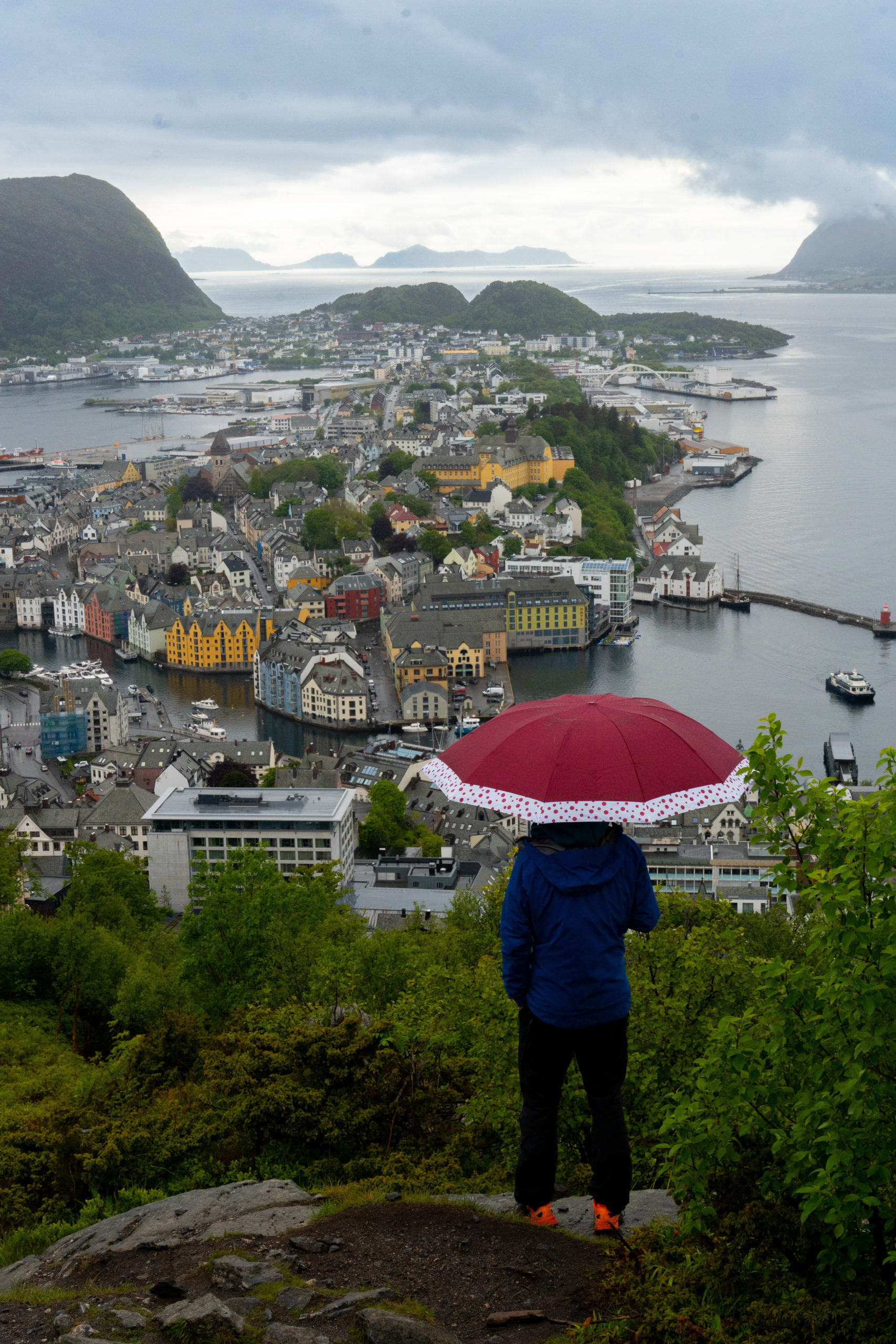 Wäg em Rägewätter hemmer de Geirangerfjord am 30.05. nume vomene Autoussichtspunkt us bewundered. Denn simmer witer is Küstestädtli Ălesund gfahre. De Dominic isch ned so zwäg gsi und hed ide Tüfgarage gschlafe, während d’Linda chli dur s’Städtli isch. Leider sind aber au Städt be Räge ned eso schön azluege. Spöter simmer zäme zumene Ussichtspunkt gloffe und hend d’Stadt vo obe gseh. Chli usserhalb vom Stadtchern hemmer sogar es schöns Plätzli zum Übernachte gfunde und s‘ Wätter heds am Abig doch no guet gmeint mit üs.